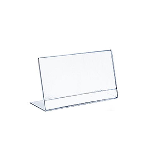 This clear, acrylic L-shaped sign holder is 10-Inch Wide and 8-Inch High. The L-shaped design is perfect to marketing information or advertising material. It can be used as a tabletop display or as a picture frame. The frame’s side-load design allows for easy insertion of printed material. Sold in packs of 10. Item Id: 85-112719