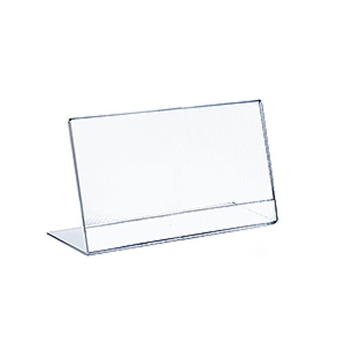 This clear, acrylic L-shaped sign holder is 12-Inch Wide and 9-Inch High. The L-shaped design is perfect to marketing information or advertising material. It can be used as a tabletop display or as a picture frame. The frame’s side-load design allows for easy insertion of printed material. Sold in packs of 10. Item Id: 85-112713