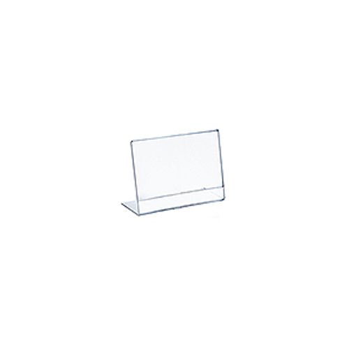 This clear, acrylic L-shaped sign holder is 5-Inch Wide and 5-Inch High. The L-shaped design is perfect to marketing information or advertising material. It can be used as a tabletop display or as a picture frame. The frame’s side-load design allows for easy insertion of printed material. Sold in packs of 10. Item Id: 85-112728