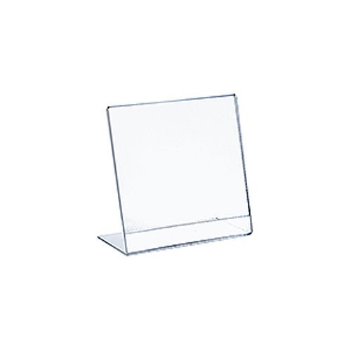 This clear, acrylic L-shaped sign holder is 8-Inch Wide and 10-Inch High. The L-shaped design is perfect to marketing information or advertising material. It can be used as a tabletop display or as a picture frame. The frame’s side-load design allows for easy insertion of printed material. Sold in packs of 10. Item Id: 85-112718