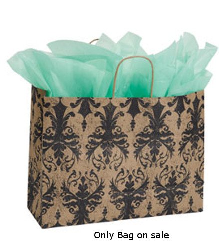 Give your store that edgy look you want with our Distressed Damask Paper Shopping bags. Our Distressed Damask Paper Shopping bags feature a bold black damask print on a kraft paper shopping bag. Sold in cases of 25. 16″x 6 ” x 12 ” (Vogue) ,Premium Original Design Kraft Bag ,Perfect for Retail Stores and Boutiques.Item Id : 85-92830