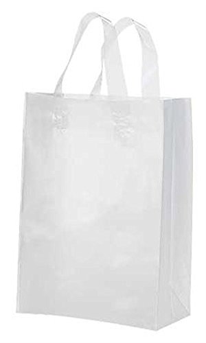 Great for special sales, holidays, or every day use, your customers will love taking home their purchases in these medium clear frosties. These frosted, clear plastic shopping bags are a popular choice among retailers. Each frosty is made of high-density plastic for durability and features loop handles with a cardboard bottom insert to keep it standing for easy bagging at checkout. Perfect for retail purchases and gifts, these frosted plastic bags offer sophistication at an affordable price. All wholesale plastic shopping bags are guaranteed in stock and available for same-day shipment. Item Id: 85-92401