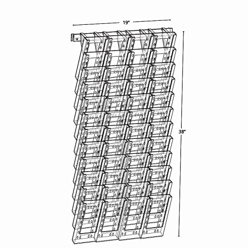 19″ Wide x 38″ High Modular Wall Mount Brochure Holder with 48 standard sized Tri-Fold brochures pockets. Made from crystal styrene. Easy to assemble (no tools required). 19″ Wide x 38″ High , Made from crystal styrene, Easy to assemble, 85-252327