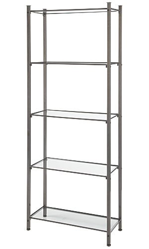 Present your prized possessions on our beautifully constructed étagère’s in this exclusive Raw Steel finish! Perfect size for a cozy corner or under the spotlight center floor! The open shelving allows customers to get a complete 360 degree look at the product and lets them pick up their favorite item for a closer view. Custom Raw Steel Finish, 5 glass shelves, Welded metal frame, 12 1/2″W x 30 3/4″L x 77″H, 85-60559