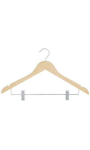 Add to the aesthetics of your retail store in a simplistic way, using our 17″ all purpose natural wooden suit hangers! Not only are these wood hangers a wise and economical choice for any retailer, but the raw color and smooth design will help to enhance the apparel on all of your clothing racks and merchandise displays. Featuring clips and metal hooks, these durable hangers will easily hold 2-piece suits and other coordinating attire. All of our wholesale hangers are in stock and available for immediate shipment. Sold in cases of 50 at discount prices! 50 hangers per case,Natural wood finish 17″ all purpose suit hanger, Silver metal hook and metal clips. Item Id: 85-25275