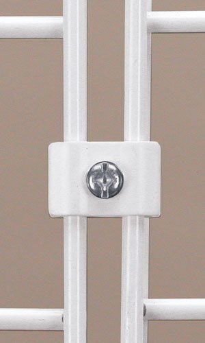 Sleek and elegant, these White Grid Connectors are used to connect two wire grid panels together. To connect grid panels, simply use 3 connectors for every two panels being connected together. If you do not have White Grid Panels, these connectors are also available in Chrome and Black, allowing you to match the hardware to your gridwall, keeping your display setting neat and organized. In stock and available for immediate shipping.White Finish Use with all wire grid & slat grid panels, Unique 3 piece design, We recommend three connectors for every two panels. Item Id : 85-40316