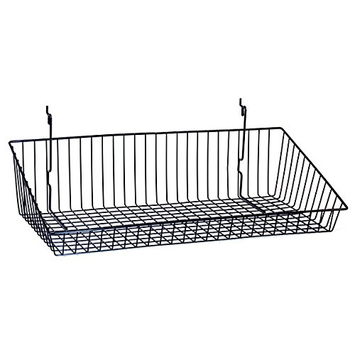 All-purpose basket gives retailer the ability to display and light to medium weight packaged or loose goods. 24″w x 12″d x 6″h Black Finish Fits Slatwall, Grid and Pegboard. Sold in cases of 6 24″w x 12″d x 6″h,, Black Finish, Fits Slatwall, Grid and Pegboard, 85-03034