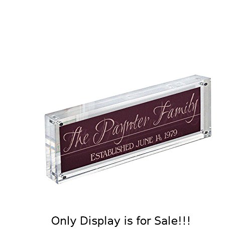 Acrylic block sign holder with magnets measures 3″W x 11″H. This unit can display graphics both vertically and horizontally. Silver corner magnets join two 0.75″ thick clear acrylic around photos, advertisements, logos and more. Item Id: 85-104430