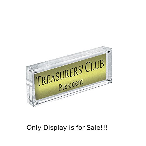 Acrylic block sign holder with magnets measures 3″W x 8″H. This unit can display graphics both vertically and horizontally. Silver corner magnets join two 0.75″ thick clear acrylic around photos, advertisements, logos and more. Item Id: 85-104431