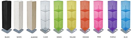4-sided pegboard interlocking counter unit measures 14″ W x 14″ D x 60″ H and sits on a revolving 20″ diameter weighted base. Available in a variety of colors. Color options shown below. Easy to assemble (no tools required). A sign holder strip comes standard with the unit. Ships un-assembled. All orders will be processed as Color Black as pictured in the lead photo – However this item comes in the following colors: (Almond,Black,Blue,Clear,Green,Pink,Purple,Yellow and White ) – Upon ordering this item please email us if want to choose a color other then Black. 14″ W x 14″ D x 60″, Weighted Base, Available Colors:(Almond,Black,Blue,Clear,Green,Pink,Purple,Yellow and White), Item Id: 85-701464-BLK