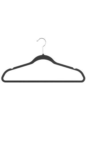 18 inch Black Velvet Dress Hangers are an alternative hanger for displaying your retail merchandise. Velvet hangers are great for displaying product that would typically fall off of a regular plastic hanger. The velvet allows strappy dresses and silky tops to stay on the hanger securely. These compact hangers feature chrome swivel hooks and notched shoulders. Item Id: 85-24123