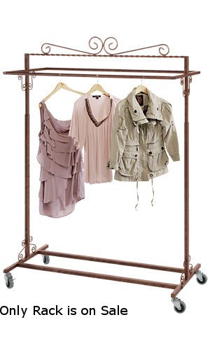 In Cobblestone finish, this clothing rack is hand-brushed and cinnamon colored to give your boutique shop that extra something! As one of the most versatile fixtures on the market, the rolling garment rack can be merchandised from both sides using two heavy duty hang rails. Featuring decorative S-shaped accents on the top, the clothing rack is a true work of art, sure to make any space look beautiful. It’s easy to roll back to the stock room, fill the rack with merchandise, and roll back out onto the showroom floor with 4 smooth gliding wheel casters. It’s easy to double your floor space by utilizing the Boutique Cobblestone Double-Rail Rolling Rack. The salesman rolling rack also features easy-push buttons which allows vertical extension from 48″ to 72″ in three inch increments. 48″W X 20″D X 48-72″H, Weight Capacity 200 lbs, Color: Cobblestone, Stylish Decorative Top, Includes Casters for Easy Mobility, 85-60420