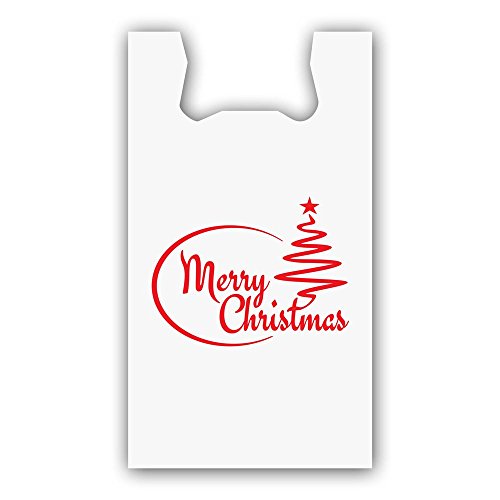 Our Holidays bag is made of a sturdy high density 13 micron plastic in a T-shirt style bag. Features an attractive Christmas design.Soldi n case of 1000 Sold in cases of 1000, 11 1/2 in. W x 6 in. D x 21 in. H, Plastic, 85-8498