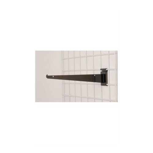 12″ Metal Shelf Brackets are for use on wire grid, and keeps shelves in place for an outstanding display! The Black finish suits any color scheme, but these brackets are also available in Chrome and White, for your convenience. These shelf brackets are extremely durable and will not break, holding your display shelves in place for a sturdy, reliable merchandise display. Highlight your store’s finest products on your shelves without worry! In stock and ready to ship immediately.Sold in cases of 8 Sold in cases of 8 Black Finish For use with 3″ on center Wire Grid and Slat Grid Panels Use with any standard 12″ depth shelf 30 lb. load limit per bracket (this includes the weight of the shelving and Item id: 85-40410