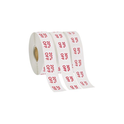 During a store-wide sale, retailers can now quickly and easily discount merchandise with various price mark-downs. Our Discount Label Kit includes one roll of 20% Off, 30% Off, and 50% Off labels. Each roll features 1000 labels, allowing you to mark-down all necessary inventory. Coordinate our percentage-off discount labels with our sale signs to notify customers of big sales. Item Id: 85-93126