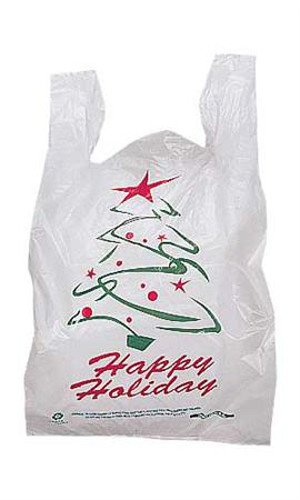 The Holiday Plastic T-Shirt Bag takes the construction of our most popular bags and adds some Christmas Spirit. The “thank you” bag is a wonderful way to show your customer that you appreciate their business, and this particular bag says it with holiday cheer! In a standard size, measuring 11.5″ x 6″ x 21″, these plastic t-shirt bags are an economical choice for packaging general merchandise during the holiday season. Featuring a Christmas tree design and the phrase “Happy Holidays”, customers will love taking home their purchases in these thank you bags! Sold in cases of 1000 and in stock in all warehouses, these wholesale t-shirt bags are available for same-day shipping. Case of 1,000, 11 ½” x 6″ x 21″, Material: durable plastic, Use with bagging stand (90110), Says “Happy Holiday”, 85-90240