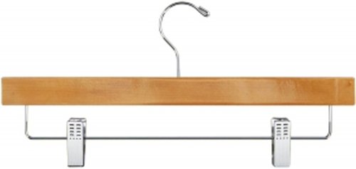 14″ Wood Pant Hanger, Natural color Finished, Chrome Clips and hooks Sold in cases of 50. Sold In Packs Of 50, Color: Natural Oak, Chrome Hook, Chrome Clips, 85-58-105