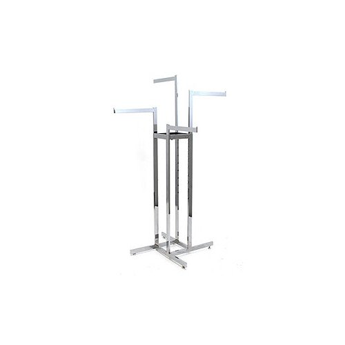 Display your merchandise exactly how you want it displayed with the fully adjustable 4-Way Clothing Rack with straight arms. They are great for central floor displays! The 4-way garment racks also feature welded end caps and adjustable leveler glides. Chrome Finish.Item id: 85-28113