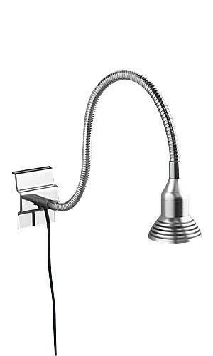 Assembly is easy as it comes complete with brackets for Slatwall and Wire Gird products. Our Light has a 12″ adjustable arm allowing it to emit light in any direction. The LED light emits 200 lumen, which will highlight any of your store’s merchandise in its best light. On top of that, the 11 Ft cord allows it to be plugged in to an outlet relatively far away from its location. Show off your various products with this Chrome Slatwall/Wire Grid Light. It is made specifically for retail lighting, but can be used for other illumination purposes, too. It’s beautiful chrome finish gives it a modern look that will fit well in any display setting. For use on 3″ on center Wire Grid, Slatwall and Slat grid Panels, 11 foot cord, Flexible arm, LED light emits 200 lumen = 20 watt incandescent bulb, 85-12155