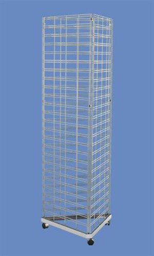 It’s easy to place first class selling power behind your merchandise! Using the versatile Triangular Slat Grid Tower with Base & Casters, retailers can take advantage of three dimensions on which to organize their merchandise. It features 3 grid panels, connectors and a base with casters, making it easy to assemble and rearrange. The overall size of the grid tower measures 24” x 24” x 24” x 6-1/2’H. Shelves and faceouts sold separately. It’s easy to create the merchandise display you’re looking for! In stock and available for immediate shipment. Chrome Finish, Includes (3)2′ x 6′ slat grid panels, (9)wire grid connectors and (1)triangle grid base w/casters, Overall size: 24″ x 24″ x 24″, Overall Height 6½’, 85-60443