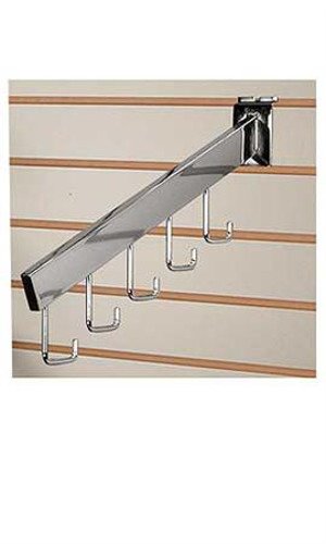 The chrome finish looks great with any color slatwall, and it won’t distract your customers from your products on display. It’s the perfect piece to complete any slatwall display. This 5-J-Hook Waterfall Dimensional Faceout will increase the space you can use to display merchandise on your Slatwall display settings. The J-Hook Feature is a great feature for hanging various types of clothing, without worry that they’ll fall off the rack. Chrome Finish, Use with 3″ on center Slatwall & Slat Grid Panels, 1½” x ½” rectangular tube, Also Available in Black or White, Sold in cases of 10, 85-45144