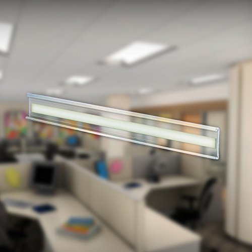 11″ Wide x 2″ High Horizontal Wall Mount Nameplate. Made from extruded acrylic with adhesive tape on the back. C-Channel design allows for easy insertion of printed material. Sold in packs of 10. 11″ Wide x 2″ High , Clear Acrylic construction, C-Channel design for easy insertion, 85-199609