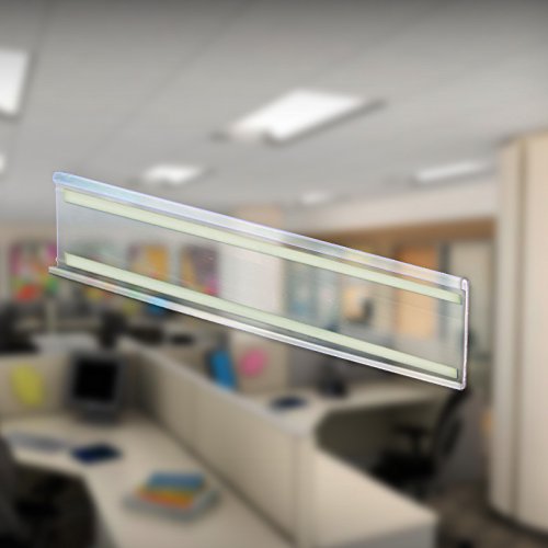 11″ Wide x 4″ High Horizontal Wall Mount Nameplate. Made from extruded acrylic with adhesive tape on the back. C-Channel design allows for easy insertion of printed material. Sold in packs of 10. 8.5″ Wide x 1.5″ High , Clear Acrylic construction, C-Channel design for easy insertion, 85-199615