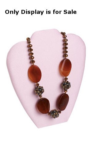 Show your necklaces off in an affordable stylish way with our Pink Necklace Display Easel. The easel is a lightweight economical way to make the most of your jewelry. The display easel features a curved, padded, fabric covered front display area that mimics the look of a natural neckline to allow for proper draping. Additional features include a paper backing with an integrated easel to allow for the display to stand on its own. Overall dimensions of the display are 7 1/8″W x 8 3/8″L, Pink Satin Finish , Padded For Easy Pinning , Integrated Back Easel, 85-55801