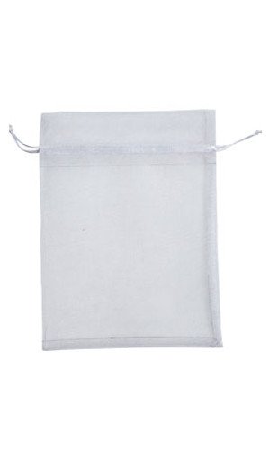 The bag has an integrated satin drawstring that can be pulled to secure the contents inside. These are wonderful for all sorts of merchandise such as jewelry, candles or small gifts. Silver Organza bags are a wonderful alternative to a traditional gift box or merchandise bag. Our 5×7″ bag features a soft see-through fabric that has a beautiful sheen that is silky to the touch. Sold in packs of 10. 5″ W x 7″ H, Features white silky see-through fabric, Satin drawstring closure, Available Colors: Basil, Black, Lavender, Pink, Silver and White, 85-55467