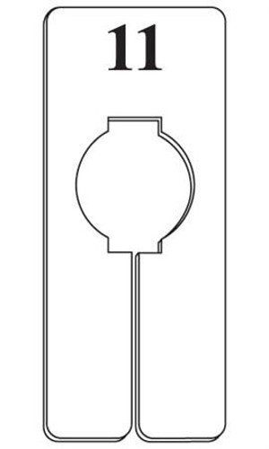 Our size 11 dividers fit standard 1 1/4″ hangrail (standard size for 36″ round racks) and square tubing clothing racks. Our divider feature a 5″ L x 2″W plastic white rectangle with a black ’11’ to indicate the size on both sides. Rectangular Size Dividers are a useful, cost effective way to allow your customers to see where their size is on the sales floor. These hangrail size dividers will keep your merchandise organized and accessible, to help you close the sale. Sold in cases of 10. 5″ L x 2″ W, Plastic white divider with black numbers, Fits standard 1 1/4″ round hangrail, Fits 1/2″x1-1/2″ dimensional hangrail , 85-38-11