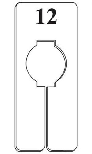 Our size 12 dividers fit standard 1 1/4″ hangrail (standard size for 36″ round racks) and square tubing clothing racks. Our divider feature a 5″ L x 2″W plastic white rectangle with a black ’12’ to indicate the size on both sides. Rectangular Size Dividers are a useful, cost effective way to allow your customers to see where their size is on the sales floor. These hangrail size dividers will keep your merchandise organized and accessible, to help you close the sale. Sold in cases of 10. 5″ L x 2″ W, Plastic white divider with black numbers, Fits standard 1 1/4″ round hangrail, Fits 1/2″x1-1/2″ dimensional hangrail , 85-38-12