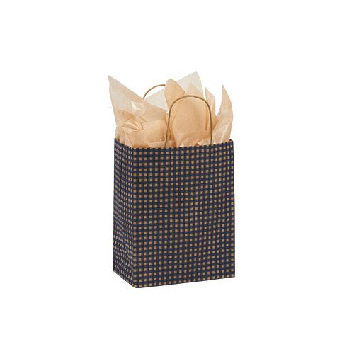 Medium Blue Gingham Paper Shopping Bags are the perfect addition to your retail store! The medium bags are perfect for gift items and other various wares while still remaining durable and stylish. Featuring a traditional blue gingham print these bags are sure to be loved by your customers. Sold in a case of 100 bags. Item id: 85-92549