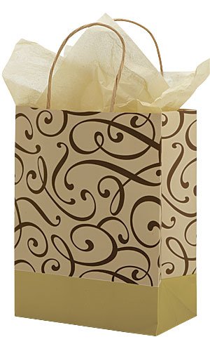 Count of 100 Medium Chocolate & Gold Swirl Paper Shopping Bag 8″ x 4 ½” x 10 ¼”
