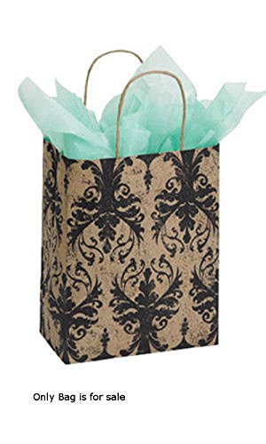 Our Distressed Damask Paper Shopping bags feature a bold black damask print on a kraft paper shopping bag. Give your store that edgy look you want with our Distressed Damask Paper Shopping bags. Sold in 100 Quantities. 8″ x 4 ½” x 10 ¼ ” (Cub), Premium Original Design Kraft Bag, Perfect for Retail Stores and Boutiques , 85-92734