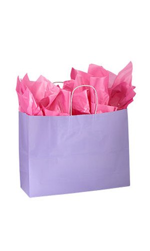 Large Lavender Glossy Paper Shopping Bags are the perfect way to add a touch of lavender to your retail store. Featuring a bold glossy finish with a white interior these shopping bags are perfect for any boutique or retail store. Add tissue paper and ribbon and you instantly have a gift bag. Sold in cases of 100 bags. Case of 100, 16″ x 6″ x 12″ (Vogue), White Interior Color, 100% Recyclable, Tissue Paper Sold Separately, 85-92489