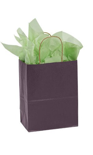 The Medium Plum Paper Shopping bags are a great packaging option for candles, scarves, hats and more! Featuring a deep plum colored exterior with kraft interior and twisted handles, these durable shopping bags are perfect for boutiques, jewelers and retail stores! Add some tissue and ribbon and you have provided your customer with an instant gift bag! Sold in a case of 100 bags. Case of 100, 8″ x 4 ½” x 10 ¼” (Cub), 70# Paper Weight, Kraft Interior Color, 85-92156