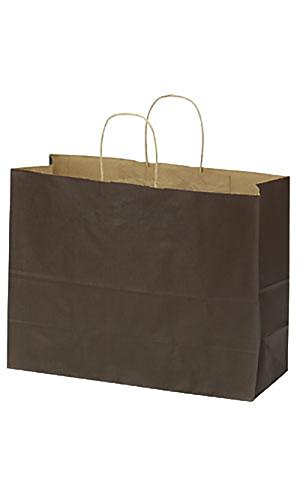 These bags are dark brown to enhance the aesthetics in your store. Pair it with our matching packaging accessories, like tissue paper, ribbon, or raffia, and these bags transform into beautiful gift bags. Made of tear-resistant paper with twisted rope handles, these durable bags will make it easy on customers when carrying home their purchases. All of these chocolate paper shoppers feature a side gusset, making them easy for checkout counter storage. Customers will love taking home their purchases in this neutral Chocolate Paper Shopping Bag! Sold in cases of 100. 16″ x 6″ x 12″ (Vogue), 70# Paper Weight , 85-92344
