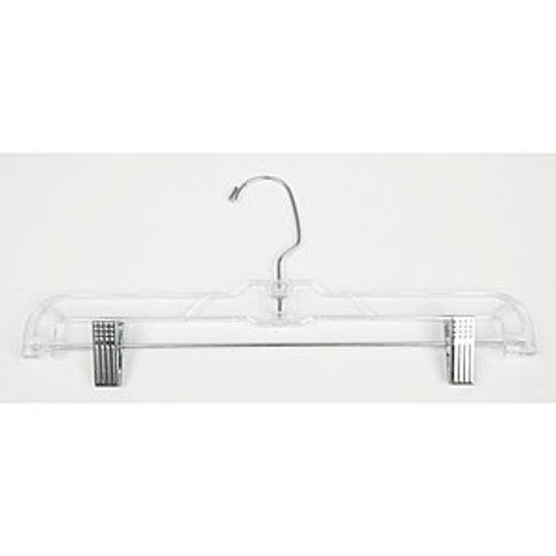 These 14″ clear plastic – pant/skirt hangers come with a steel swivel hook and hanging clips with cushions. Clear Plastic Pant Hangers w/ Adj. Clips. Sold in cases of 100 Sold in cases of 100, Swivel Hook, 14″ Length, 85-20302