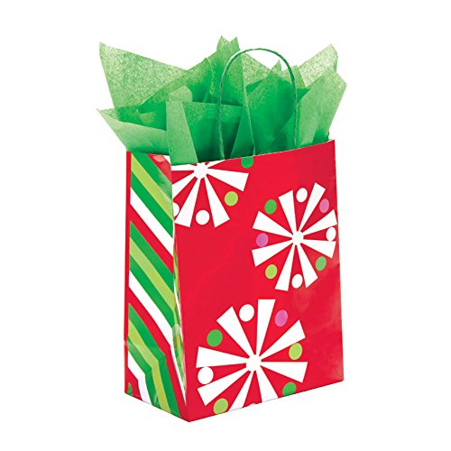 Holiday bags keep the spirit all season long. Complete with our matching tissue, search tissue.Sold in cases of 100 Sold in cases of 100, 8 in. W x 4 3/4 D x 10 1/2 H, Paper, 85-99895