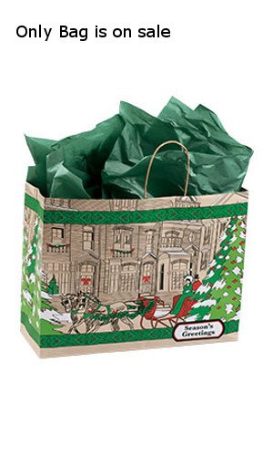 The artful Street Scene Holiday bags feature the inscription “Seasons Greetings” to ensure your customers will be in a festive holiday mood when they leave your store! Featuring bold red, green, white and black shading this bag is truly a work of art that your customers will love carrying! Bags feature a kraft interior and twisted rope handles for easy carrying of special gifts! Large Street Scene Paper Shopping Bags will have your customers feeling nostalgic for time gone by. Sold in cases of 100 bags. 16″W x 6″D x 12″H, Color: Kraft, Red White and Green, Premium Original Design,85-92372