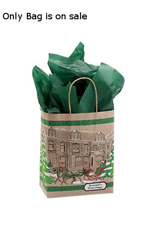 The artful Street Scene Holiday bags feature the inscription “Seasons Greetings” to ensure your customers will be in a festive holiday mood when they leave your store! Featuring bold red, green, white and black shading this bag is truly a work of art that your customers will love carrying! Bags feature a kraft interior and twisted rope handles for easy carrying of special gifts! Medium Street Scene Paper Shopping Bags will have your customers feeling nostalgic for time gone by. Sold in cases of 100 bags. 8″W x 5″D x 10″H, Color: Kraft, Red White and Green, Premium Original Design,85-92371