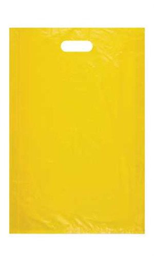 Our yellow high-density merchandise bags measure 15″ x 4″ x 24″ providing your customers with a generously sized bag to hold all of their large purchases, like jackets, coats and apparel. Made of high-density plastic and featuring die-cut handles at the top of each bag, they will provide your customers a way to transport these large items to their homes without hassle. Brighten up the aesthetics in your store, simply by adding color to your retail packaging collection! Sold in cases of 1000. 15″ x 4″ x 24″, Available in five popular sizes, .6 mil thickness (thin texture), Bag includes die cut (integrated) handle, 85-90234