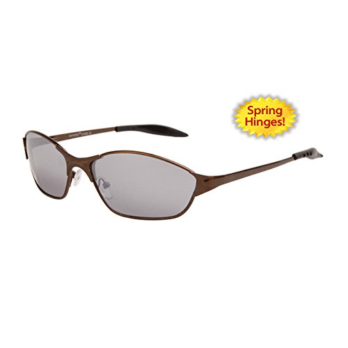 Metal frame sport sunglasses with mirrored lenses and assorted revo colors. Frame colors include silver, gun metal, and bronze. This is a very nice model with spring hinge temples. Sold in cases of 12,There are 5 colors. You will receive atleast one of each color. And the remaining will be a mix of the 5 colors., 39mm H x 128 mm W x 124mm L, Mirrored Lenses Included, 85-XS120
