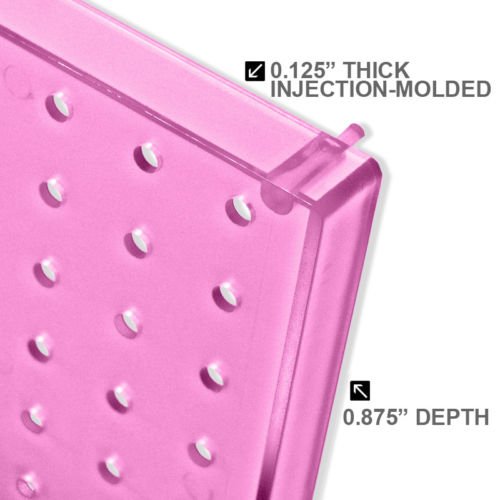 Pegboard wall panel mounts to any flat surface. Pegboard panels are injection molded creating a single plastic unit that is strong and flexible. Our pegboard panels are high quality and durable. You can use them to organize the children’s room, a hobby room, or even the garage. Our pegboards are even featured in Do it Yourself magazine (DIY magazine). This panel measures 8″ W x 20.625″ H (hardware not included). Visit our pegboard accessories section of our site for creative ideas to display and organize products. 10 color options are available. Quantity discount pricing is available. Sold in multiples of 2. Item Id:85-770820