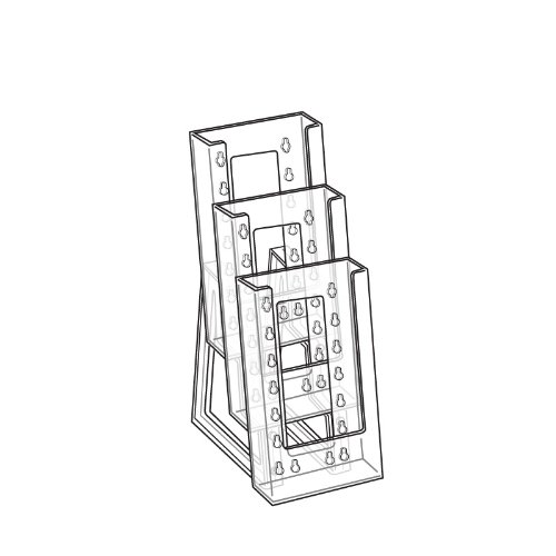 4.5″ Wide x 11.75″ High x 7″ Deep 3-tiered Modular Counter Brochure Holder. Made from clear acrylic and holds standard sized Tri-Fold brochures. Easy to assemble (no tools required). Sold in packs. of 2. 4.5″W x 7″D x 11.75″H, Made from crystal styrene, 85-252303