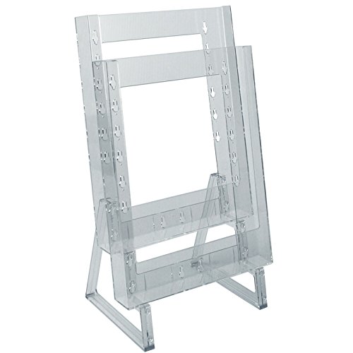 Two-tier letter size holder measures 9″W x 5.75″D x 14.5″H. Use on counter top for printed material measuring 8.5″W x 11″H. Made from crystal styrene. Choose to add a business card pocket. Ships unassembled (no tools required). Sold in cases of 2, 9″W x 5.75″D x 14.5″H, Made from crystal styrene, 85-252333
