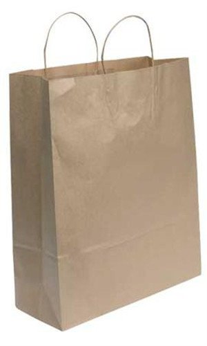 Featuring handles and a gusset, these paper shopping bags are tear resistant, making them durable and allowing your customers to carry multiple purchases in one bag. Make it easy on your customers. Now they can carry their large purchases in the jumbo Natural Kraft Paper Shopping bags. Sold in 200 Quantities. 16″L x 6″D x 19 ¼”H (Queen), #70 paper weight, 85-92109