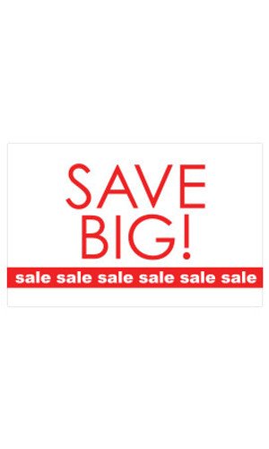 Let your customers know they can Save Big and you are having a Sale with our Medium Save Big! SALE SALE SALE sign cards! Featuring Save Big in bold red letters on a white background with Sale, sale, sale, sale printed across a red border with white lettering these signs are sure to draw attention! Sold in packs of 25! Pack of 25, 7″H x 11″W, Red, Black, White, Message Printed on Both Sides, 85-15832