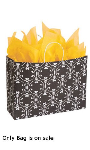 These original design bags feature a black background with white circular shapes with accent designs. Charm your customers with our Charming Halo Paper Shoppers! Sold in cases of 25. 16″ x 6″ x 12″ (Vogue), White Interior Color, 100% Recyclable, Tissue Paper Sold Separately ,85-92809