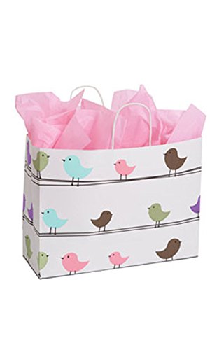 These bags feature a white paper shopper with vibrant colorful birds. Sales will fly off your store shelves with our Little Birdies Paper Shopper! Sold in cases of 25. 16″ x 6″ x 12″ (Vogue), White Interior Color, 100% Recyclable, Tissue Paper Sold Separately , 85-92812